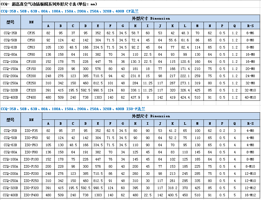 ■CCQ-?型超高真空气动插板阀为新研制的超薄阀门,是以压缩空气为动力,通过电磁换向阀改变气路方向,气缸活塞杆推(拉)动阀芯组件做直线运动,从而控制阀门的开启或关闭。该系列插板阀适用于工作介质为空气及非腐蚀性气体的场合,配有磁性感应开关,有指示灯显示开闭位置。